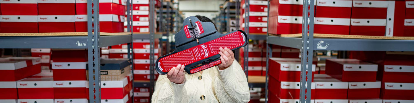 Determining your correct shoe size can seem challenging, but we've made it as easy as 1-2-3. The Brannock device is the standard measurement device in traditional shoe stores, and we have a special Brannock device designed to measure up to men's size 25! We've translated those measurements into the chart below. Just follow the instructions to find your size.