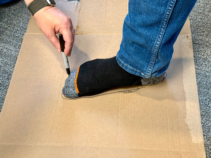 3. Holding a pencil vertically, place a mark at the end of your heel.