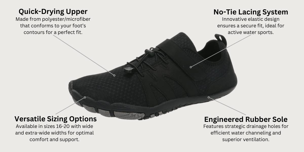 Our innovative elastic, no-tie lacing system ensures a secure fit during active water sports, while the premium PU insole offers responsive cushioning and support for extended wear. Whether you're beachcombing, kayaking, or exploring coastal terrain, the Reed keeps you comfortable and confident.