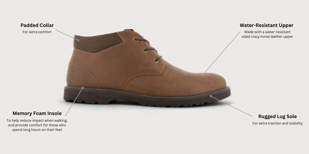 Handmade in Brazil, the Michael Ellis Woodrow shoes showcase a water-resistant oiled crazy horse leather upper, combining comfort with functionality. Lace-up styles feature a padded collar for added ankle comfort, a lug sole for extra stability and traction, and a memory foam insole that molds to your foot, providing superior cushioning and support. With rugged durability and refined style, these shoes are designed to keep you comfortable and confident, no matter where the day takes you.