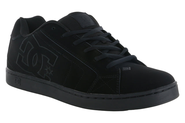 The Net skate shoes from DC Shoes have a classic puffy silhouette, durable fabric, and all-day comfort. The leather nubuck upper sits on the DC trademarked Pill Pattern tread cupsole rubber outsole. Comfort features include a foam padded tongue and collar, a textile lining, and ventilation holes for breathability.