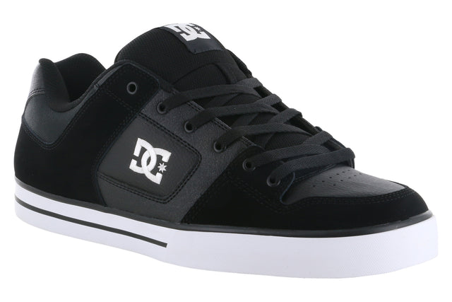 The Pure low top sneakers from DC Shoes add flair to your wardrobe and have become one of DC's best-selling styles. The leather nubuck and suede upper sits on the DC trademarked Pill Pattern tread, abrasion-resistant rubber outsole. Comfort features include a foam padded tongue and collar, a mesh lining, and a wrap cupsole constructed outsole.